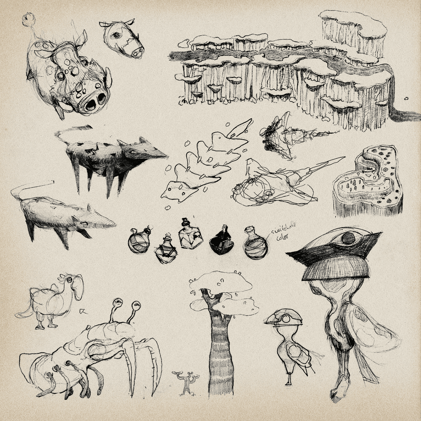 As the project progressed my sketches became rougher and less defined. They became quick notes to myself. These are a collection of sketches a bit earlier in the project.